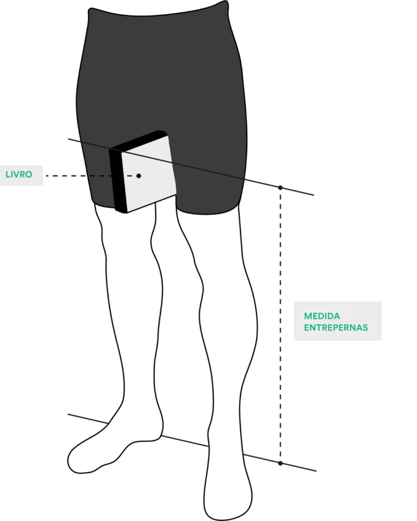 - Entrepernas (cavalo): com as costas na parede, coloque um livro entre as pernas, simulando o selim, e meça do chão até o topo do livro.
