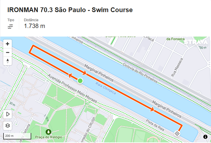 Natação (1,9 km): A largada acontece na Raia Olímpica da USP, um dos cenários mais tradicionais do esporte brasileiro. O percurso de ida e volta é considerado técnico, mas favorece quem gosta de águas calmas e previsíveis. O tempo limite para essa etapa é de 1h10.