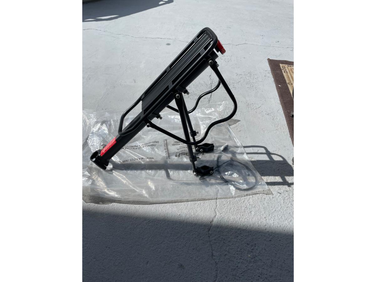 bagageiro traseiro para bicicleta, modelo universal, em aço, com refletor traseiro e fixação no canote do selim (acompanha abraçadeiras/adaptadores).